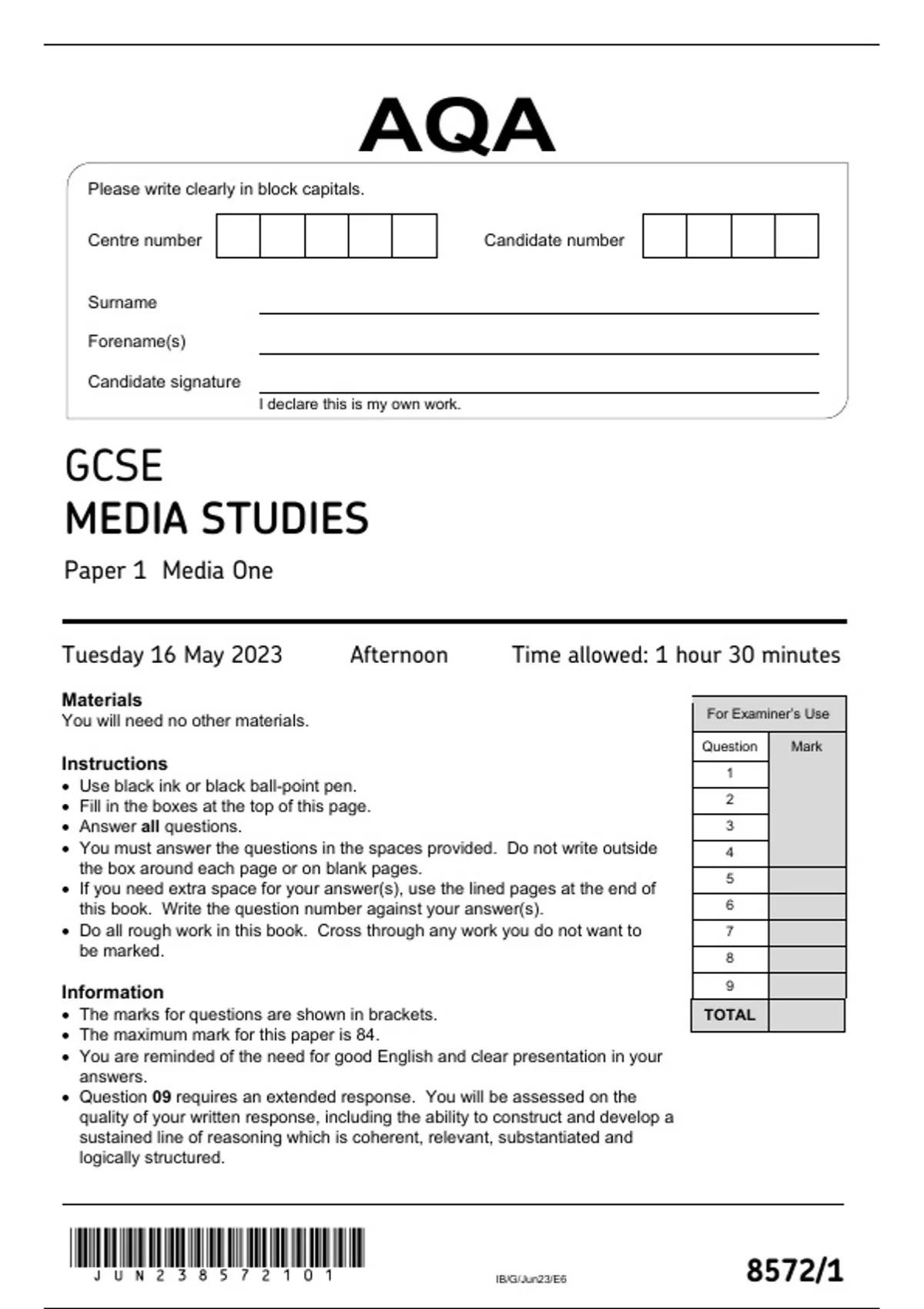 IB/G/Jun23/E6 8572/1