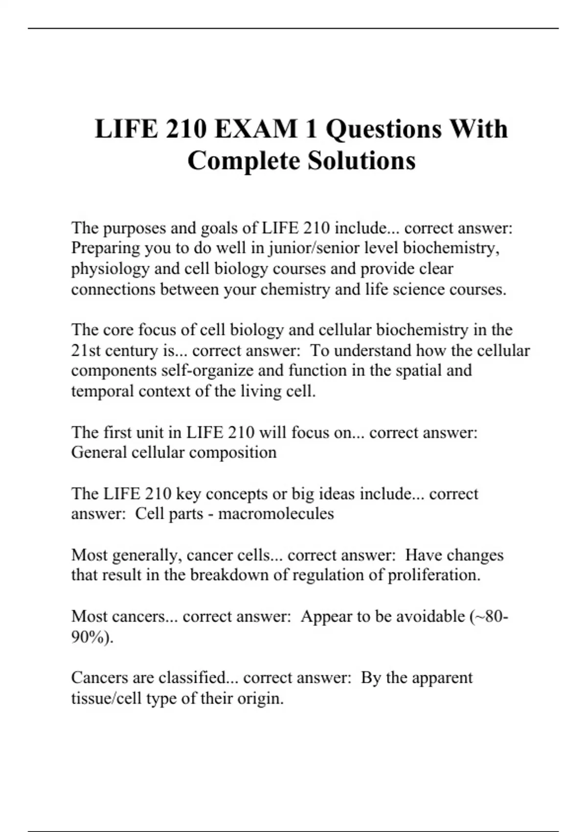 life 210 exam 1 questions with complete solutions