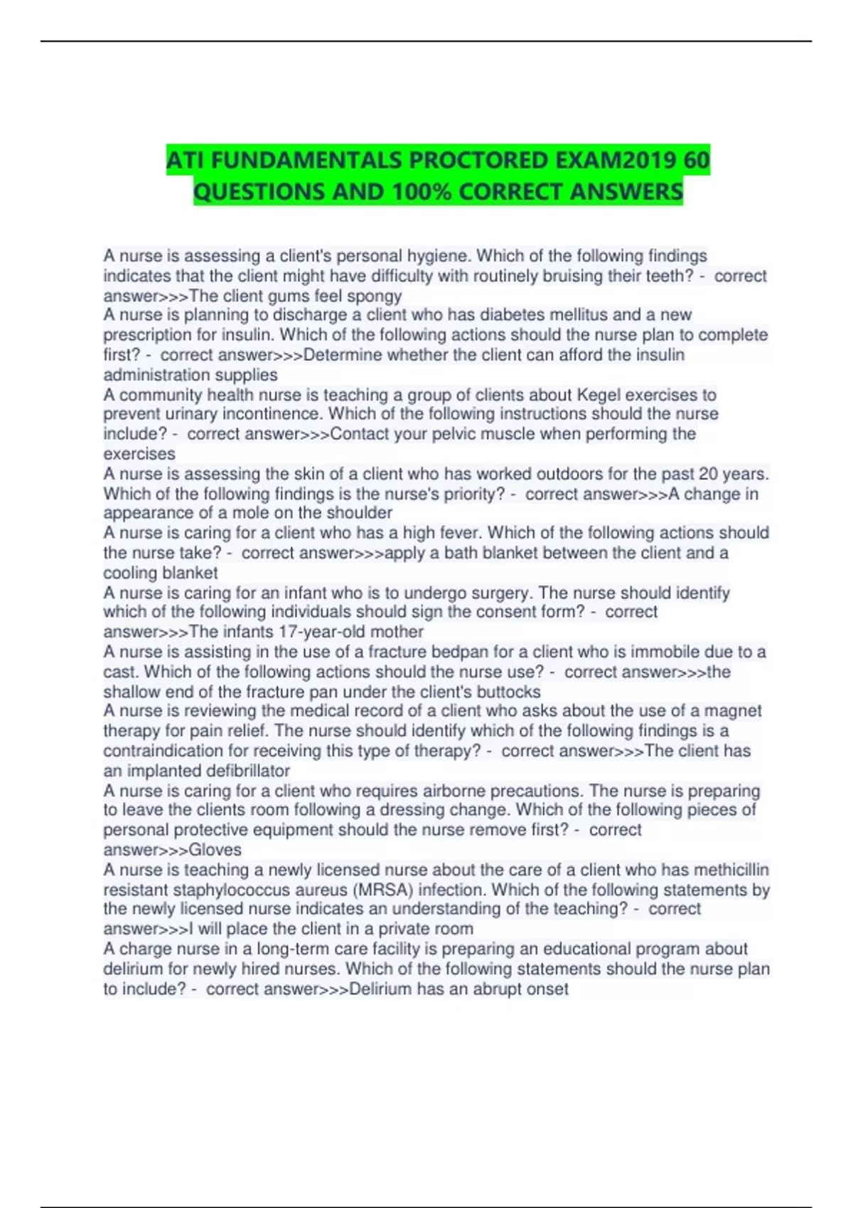 ATI FUNDAMENTALS PROCTORED EXAM2019 60 QUESTIONS AND 100% CORRECT ANSWERS.