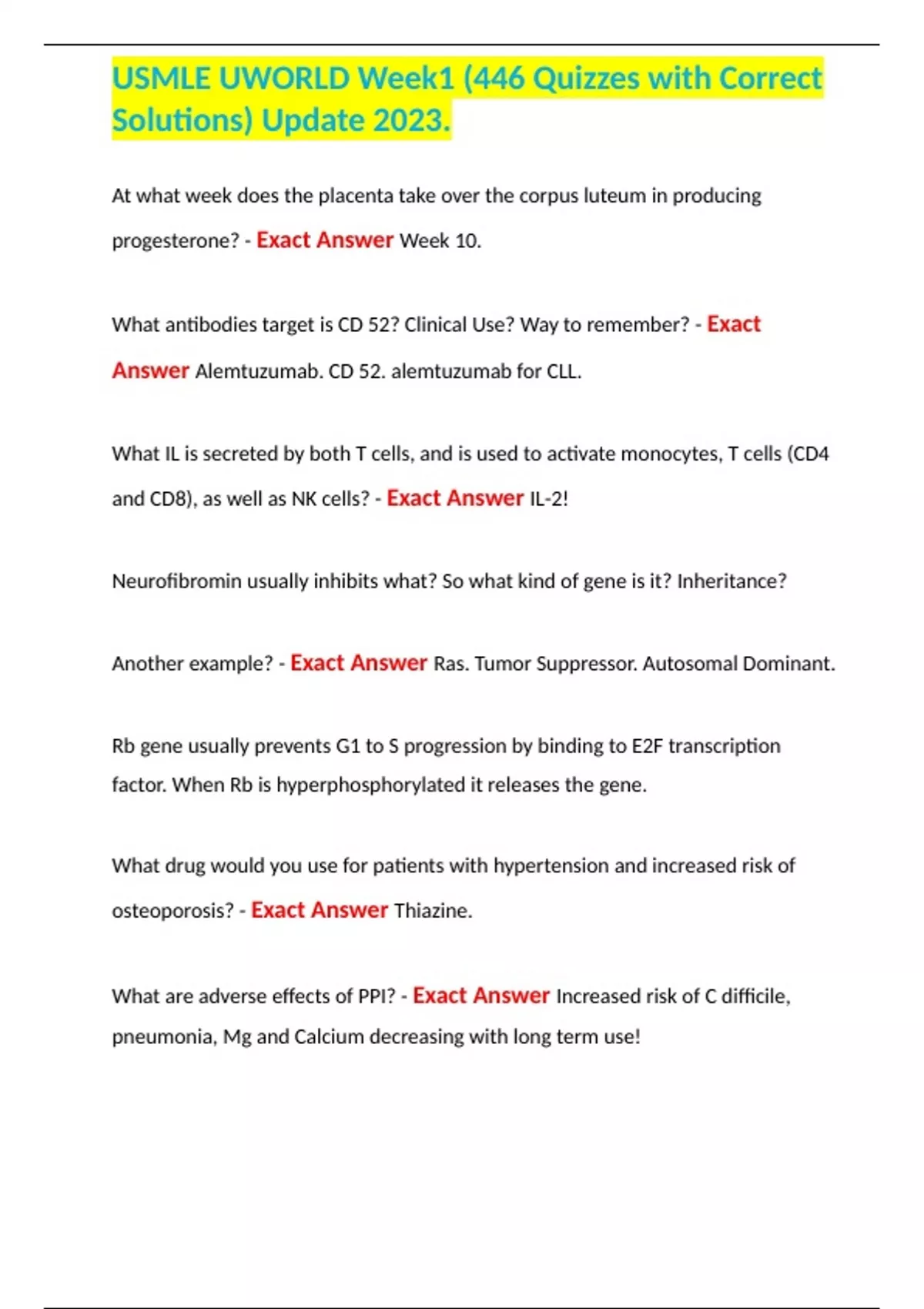 USMLE UWORLD Week1 (446 Quizzes with Correct Solutions) Update 2023.
