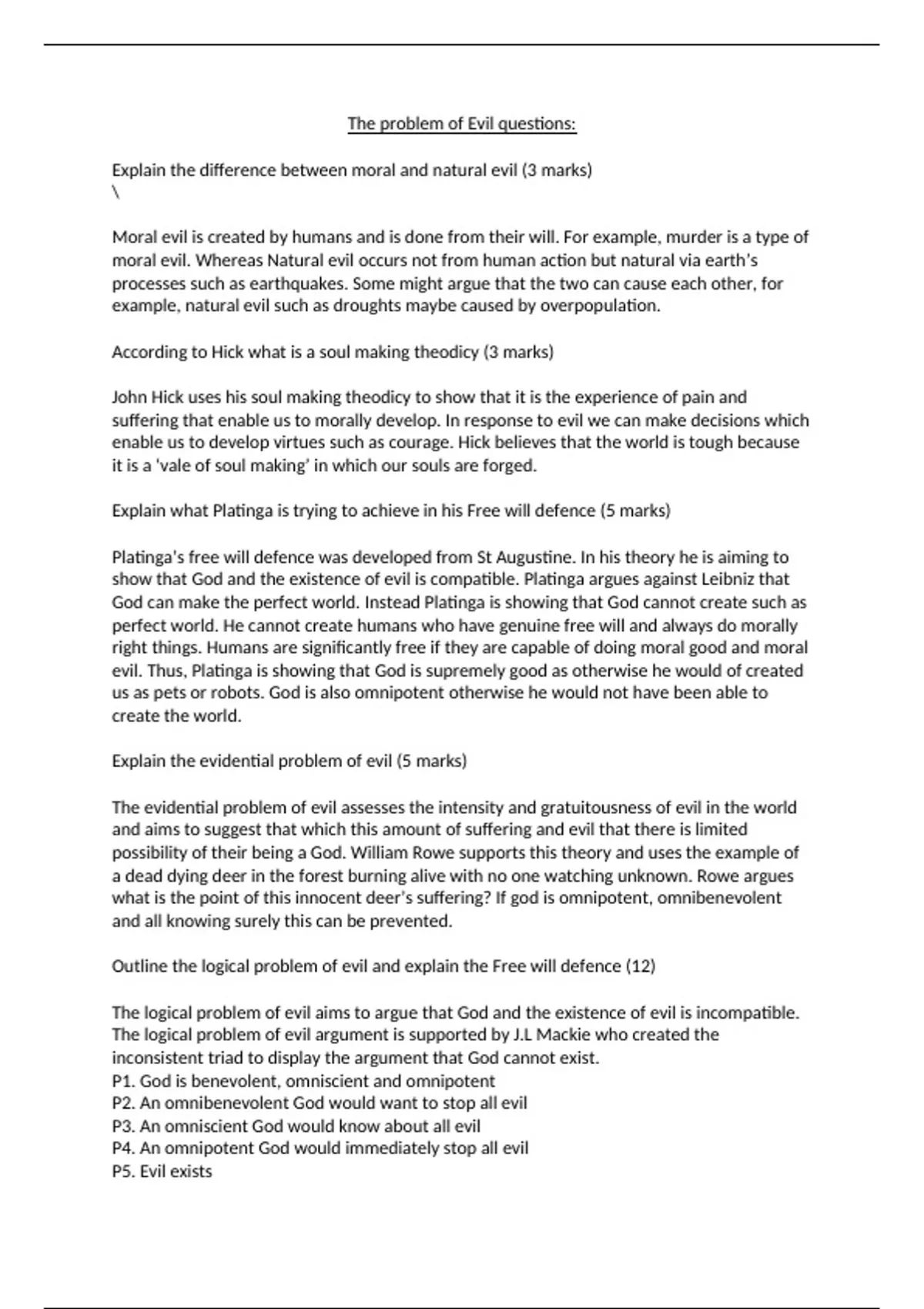 Philosophy A level AQA Philosophy problem of evil - God
