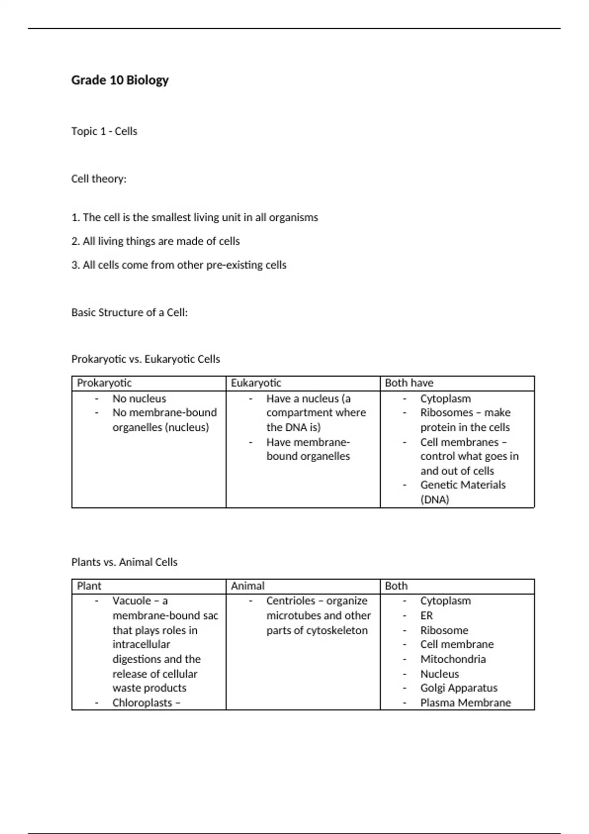 Grade 10 Biology Notes