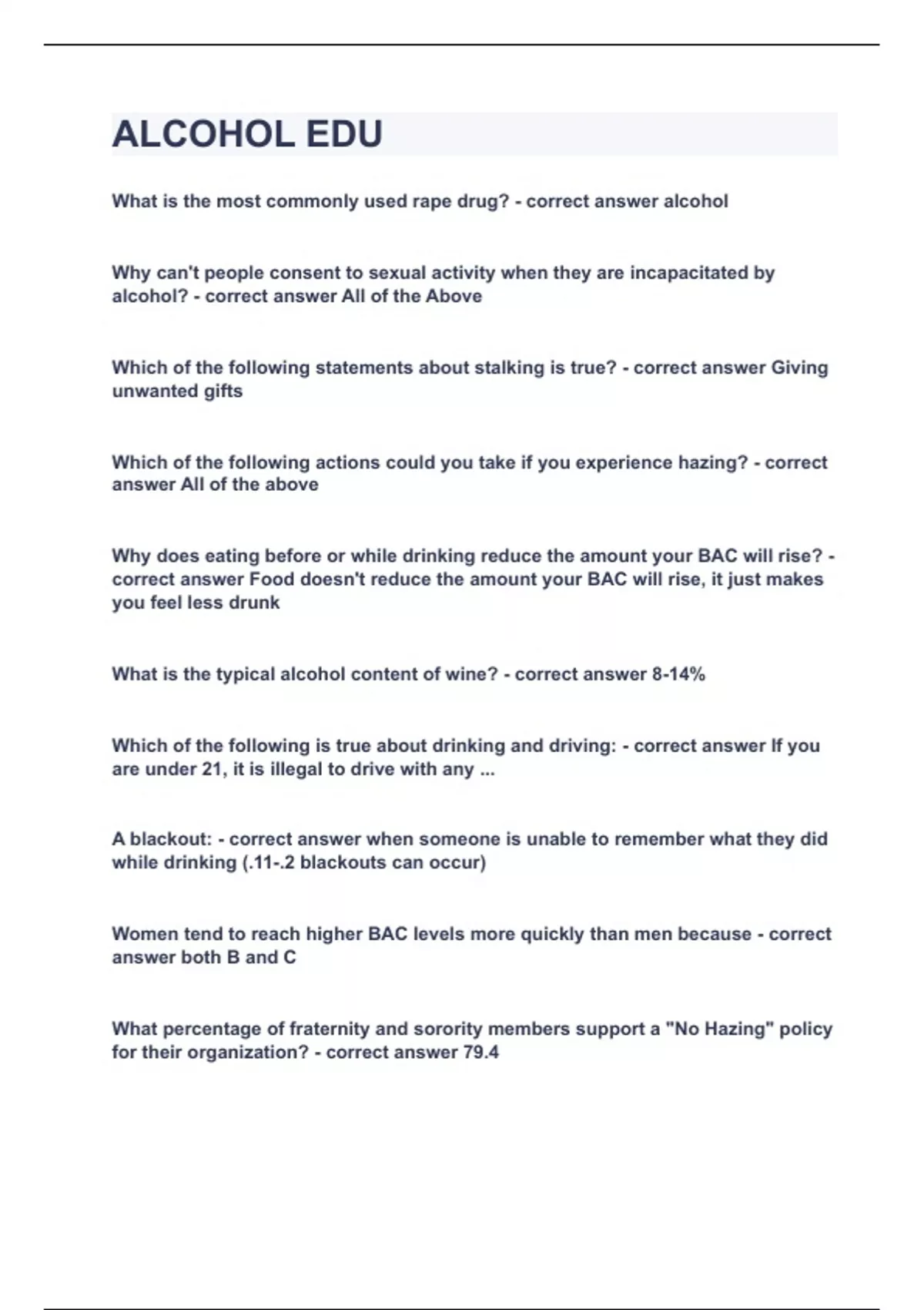 alcohol edu|updatedverified|100 solved|guarantee
