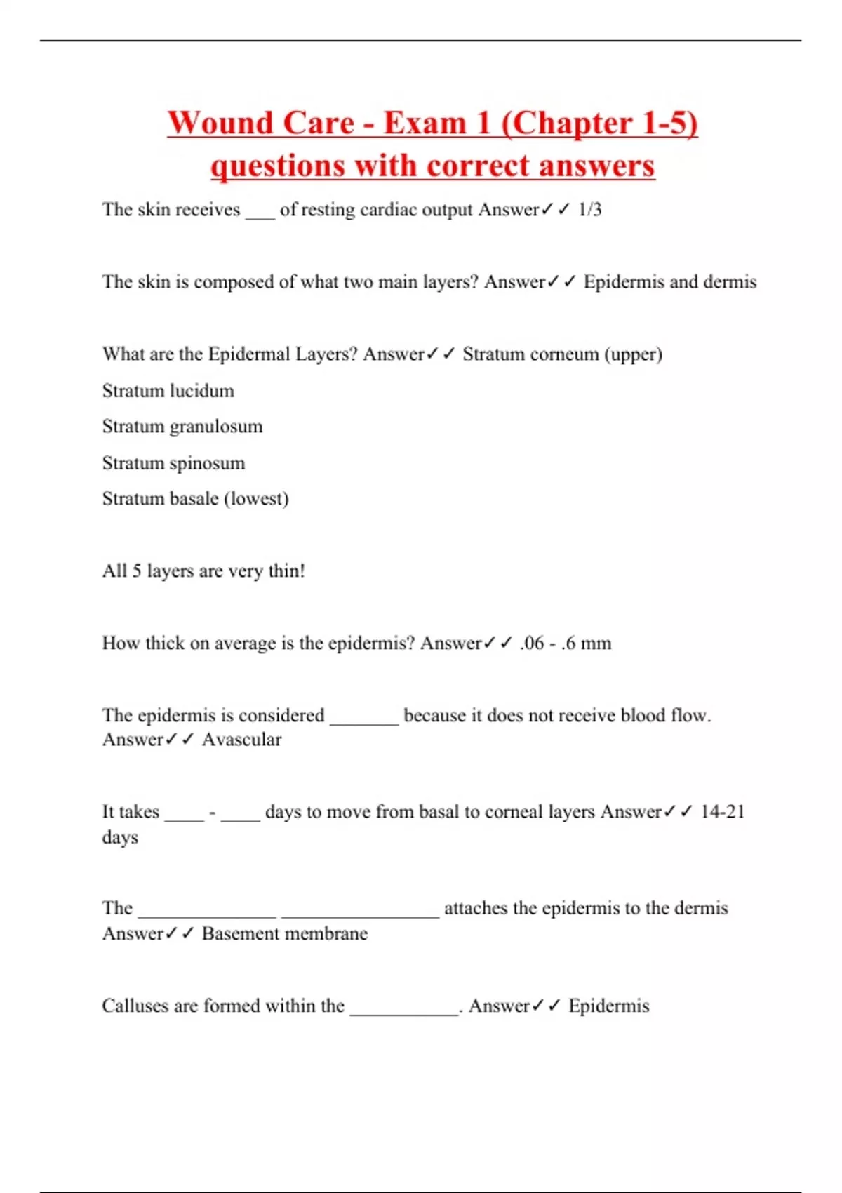 Wound Care - Exam 1 (Chapter 1-5) questions with correct answers