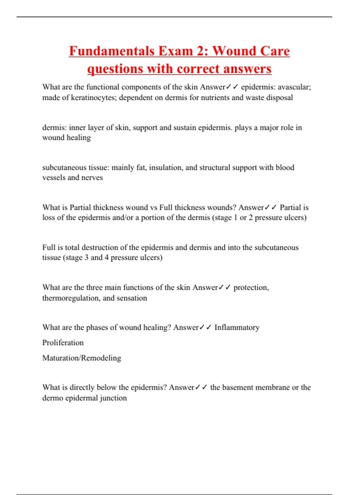 Fundamentals Exam 2: Wound Care questions with correct answers