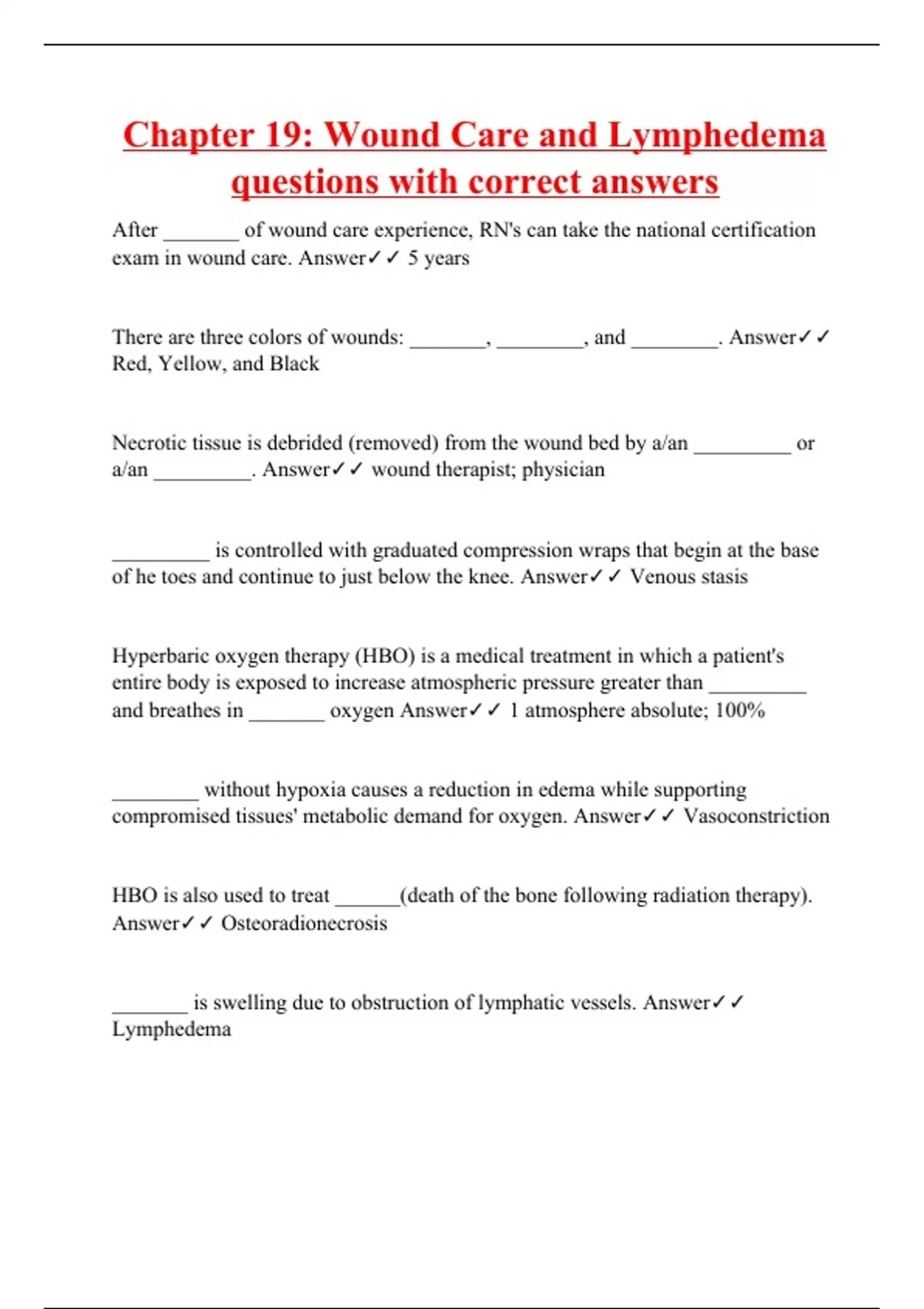 Chapter 19: Wound Care and Lymphedema questions with correct answers