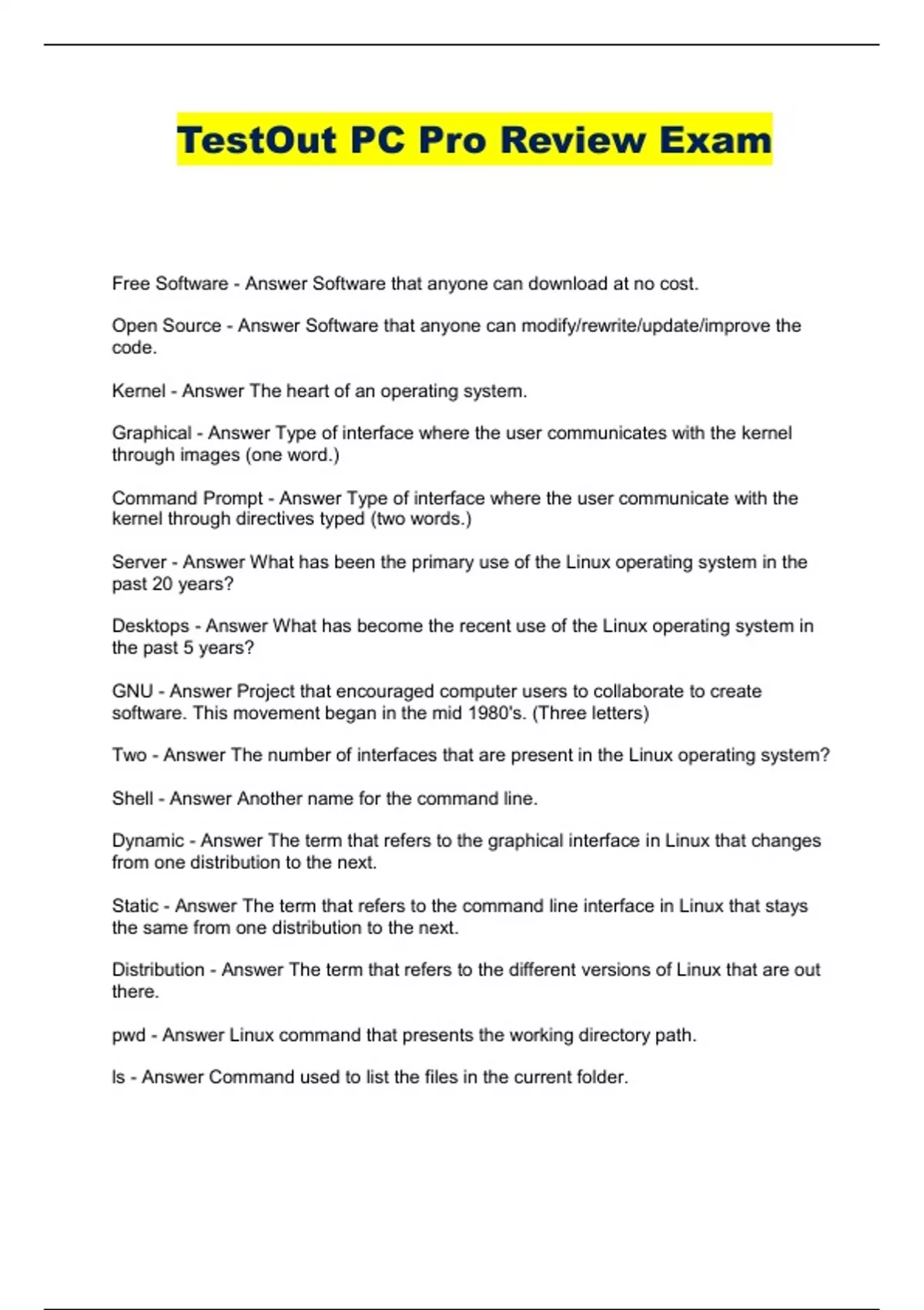 - TestOut PC Pro