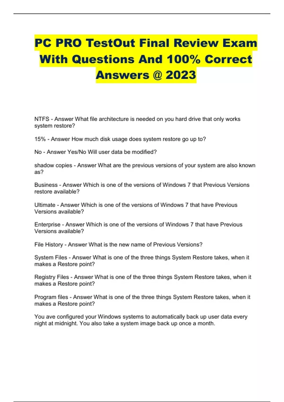PC PRO TestOut Final Review Exam With Questions And 100% Correct Answers @ 2023