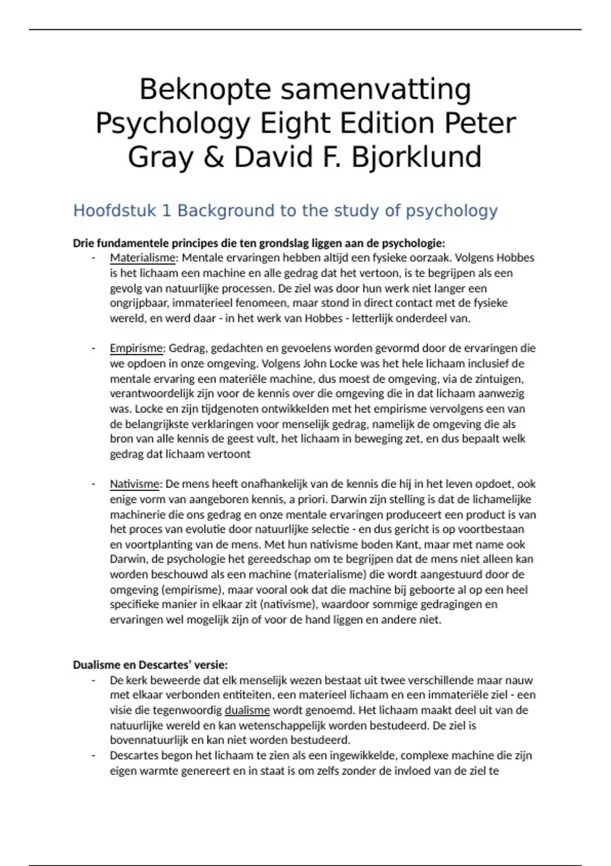 Beknopte samenvatting tentamen I psychology met begrippen en ezelbruggetjes.