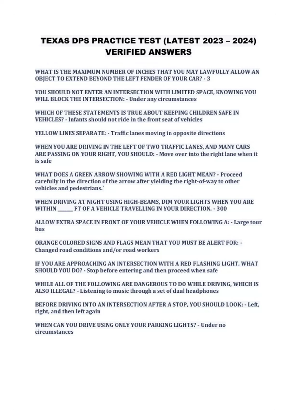 TEXAS DPS PRACTICE TEST (LATEST 2023 – 2024) VERIFIED ANSWERS