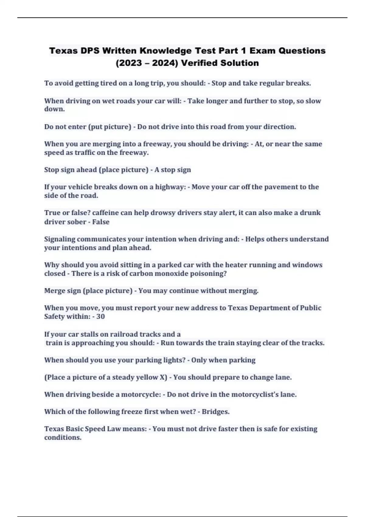 Texas DPS Written Knowledge Test Part 1 Exam Questions (2023 – 2024) Verified Solution