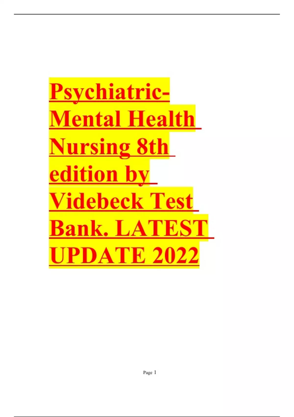 Mental Health Nursing 8th edition by Videbeck Test Bank. LATEST UPDATE 2022 Page 2Psychiatric-Mental Health Nursing 8th edition by Videbeck Test Bank Chapter 1