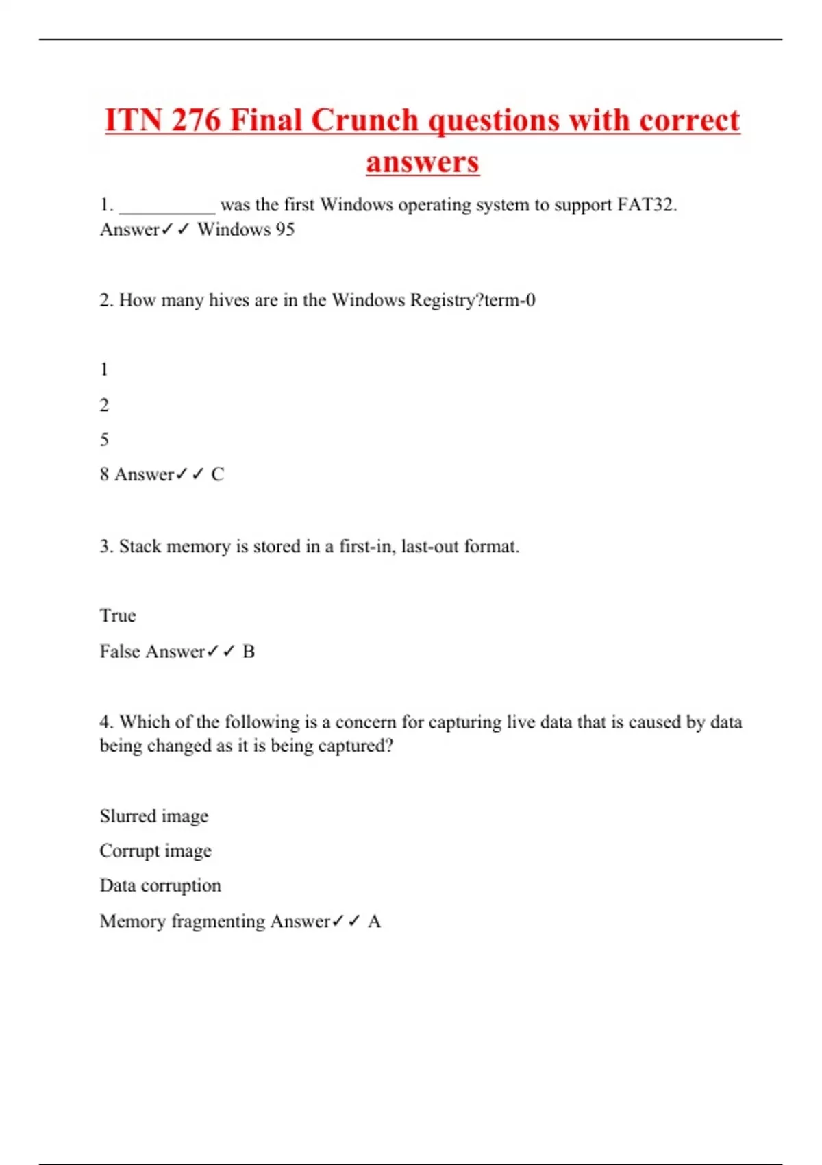 itn 276 final crunch questions with correct answer