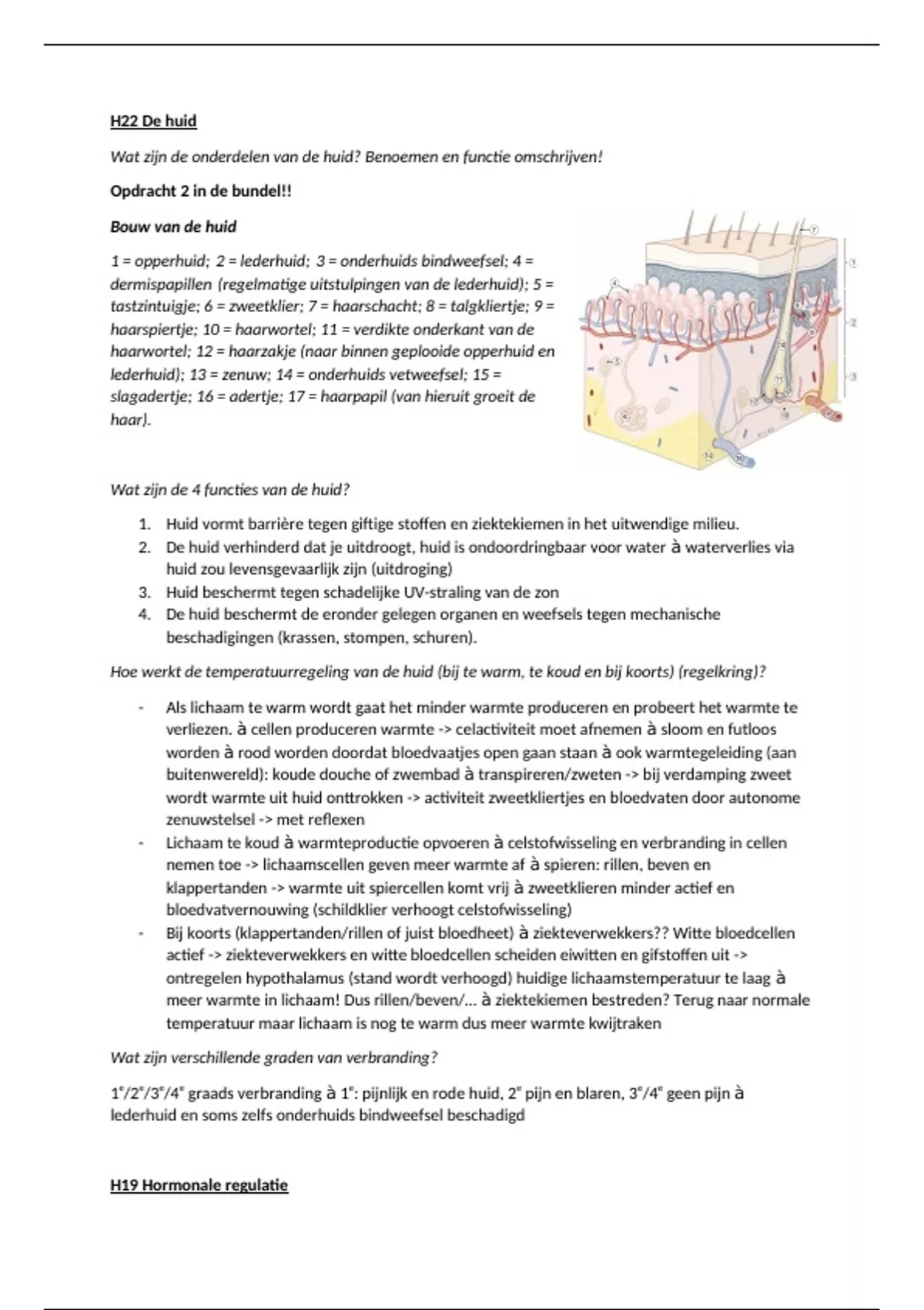 Wat zijn de onderdelen van de huid? Benoemen en functie omschrijven!