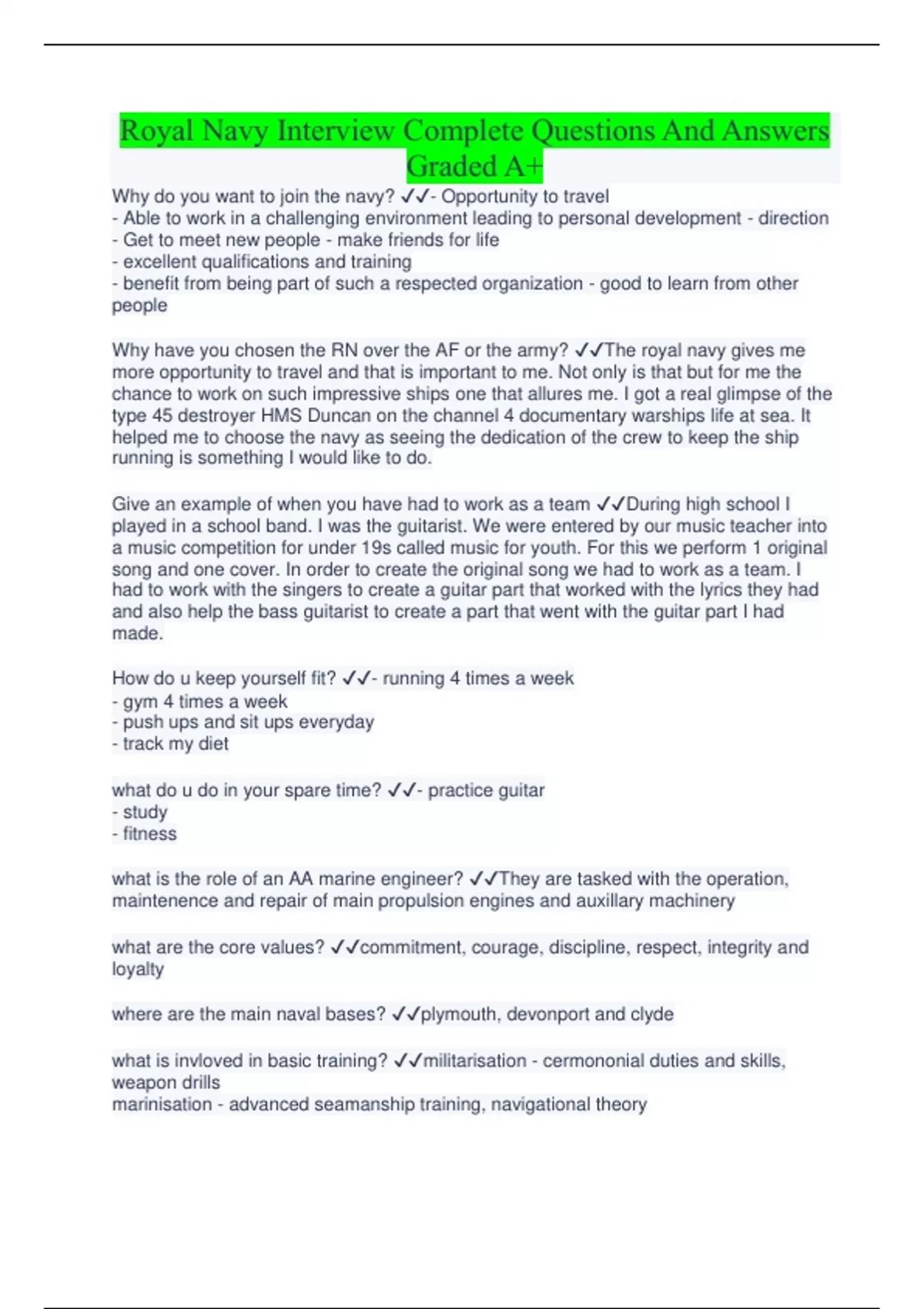 Royal Navy Interview Complete Questions And Answers Graded A+