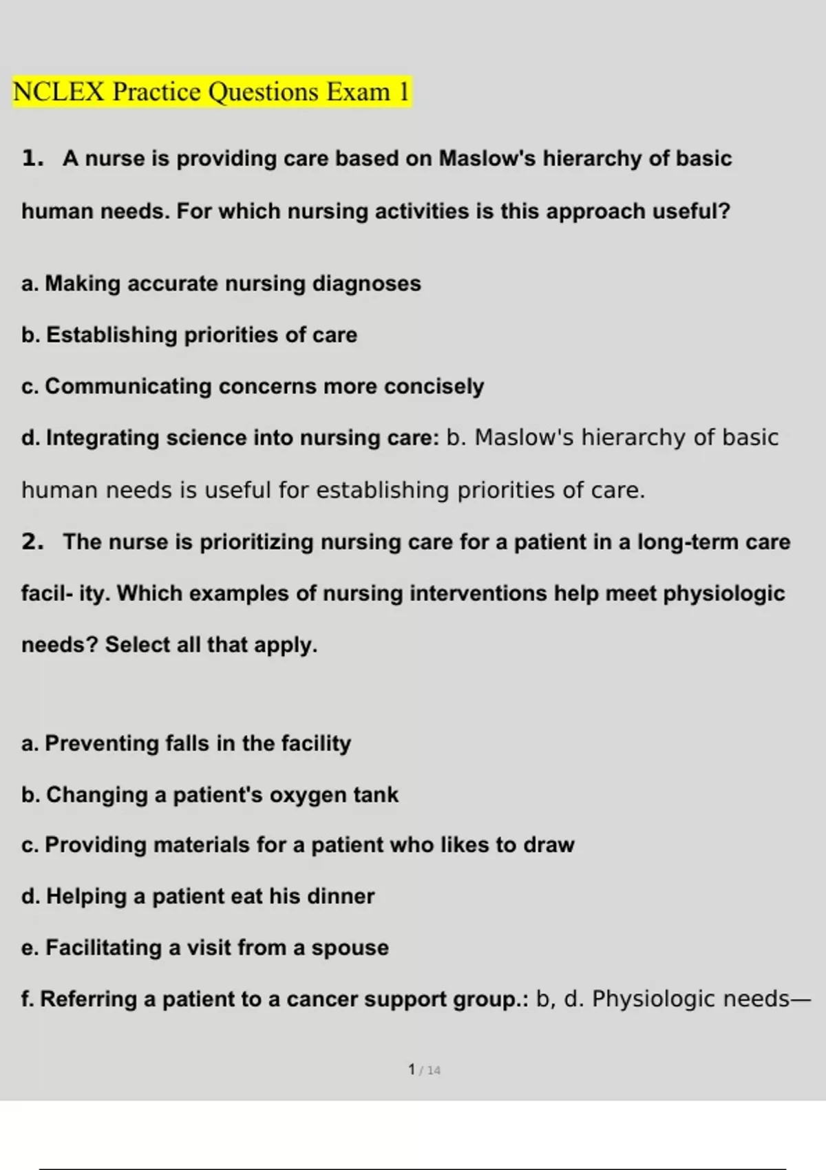 NCLEX Practice Questions Exam 1 Questions and Answers 2023 (Verified Answers)