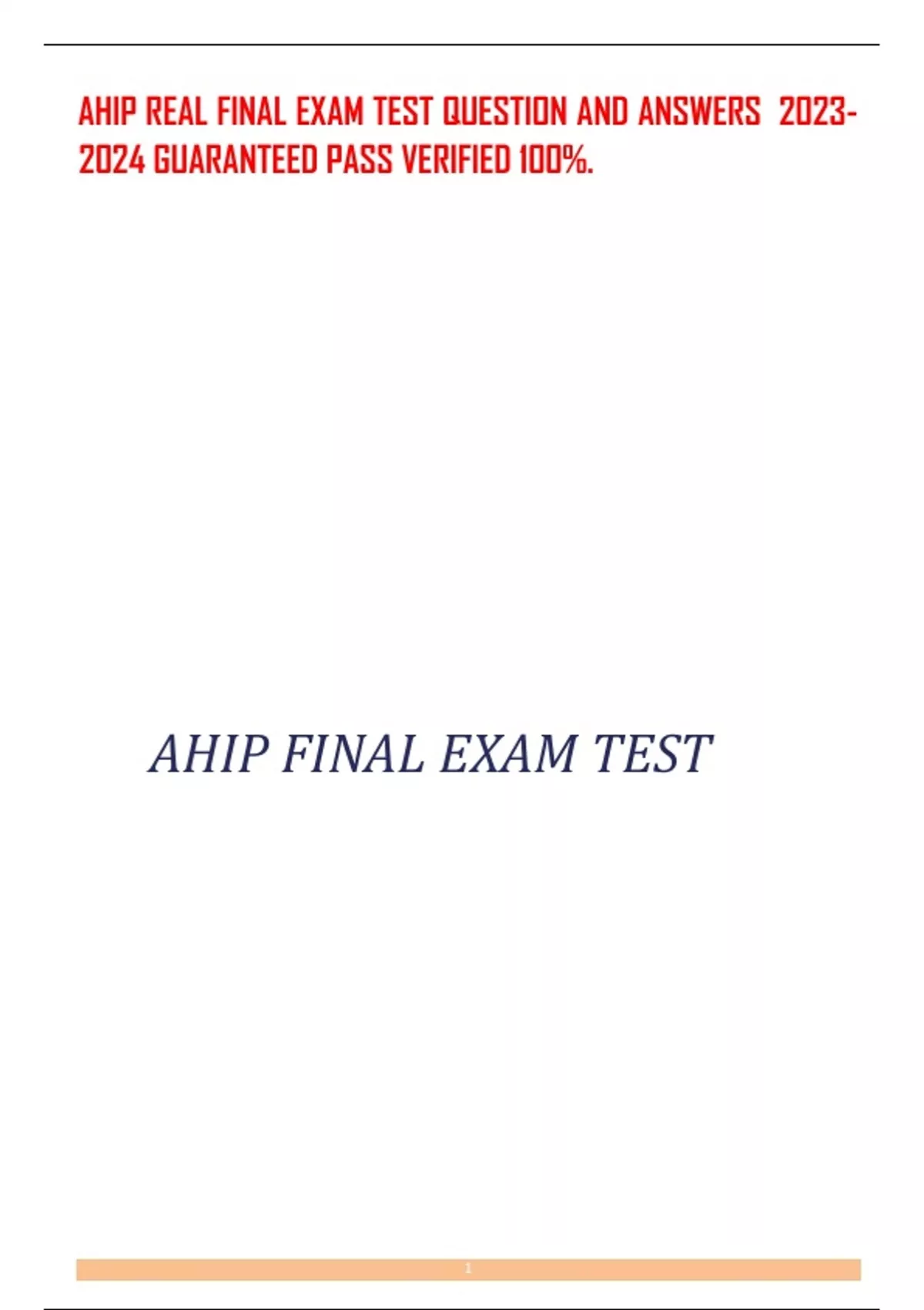 AHIP REAL FINAL EXAM TEST QUESTION AND ANSWERS GUARANTEED PASS VERIFIED 100%.