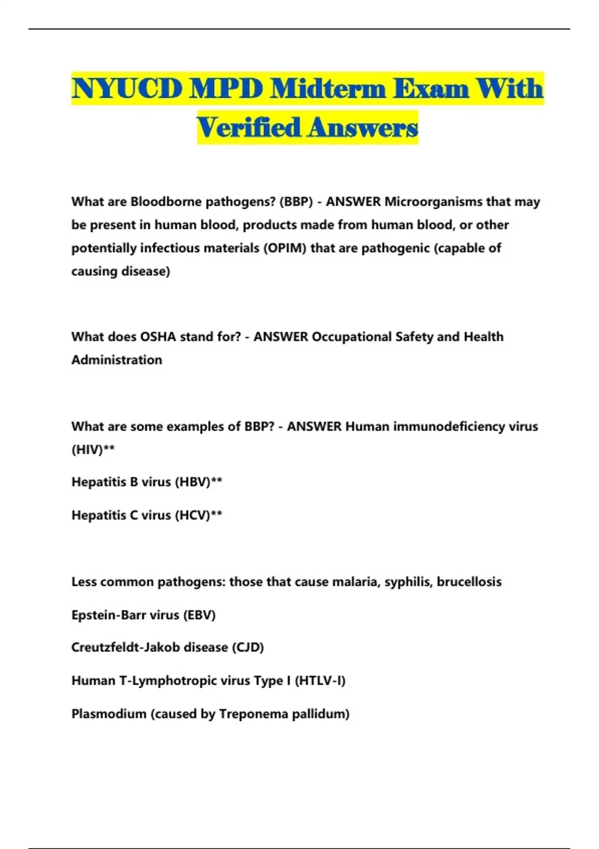 NYUCD MPD Midterm Exam With Verified Answers...