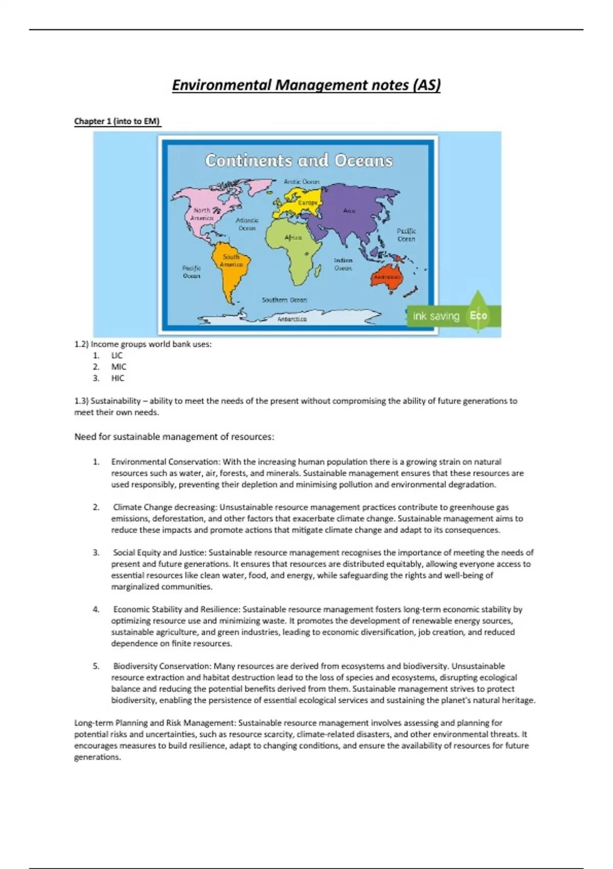 Environmental Management notes (AS)