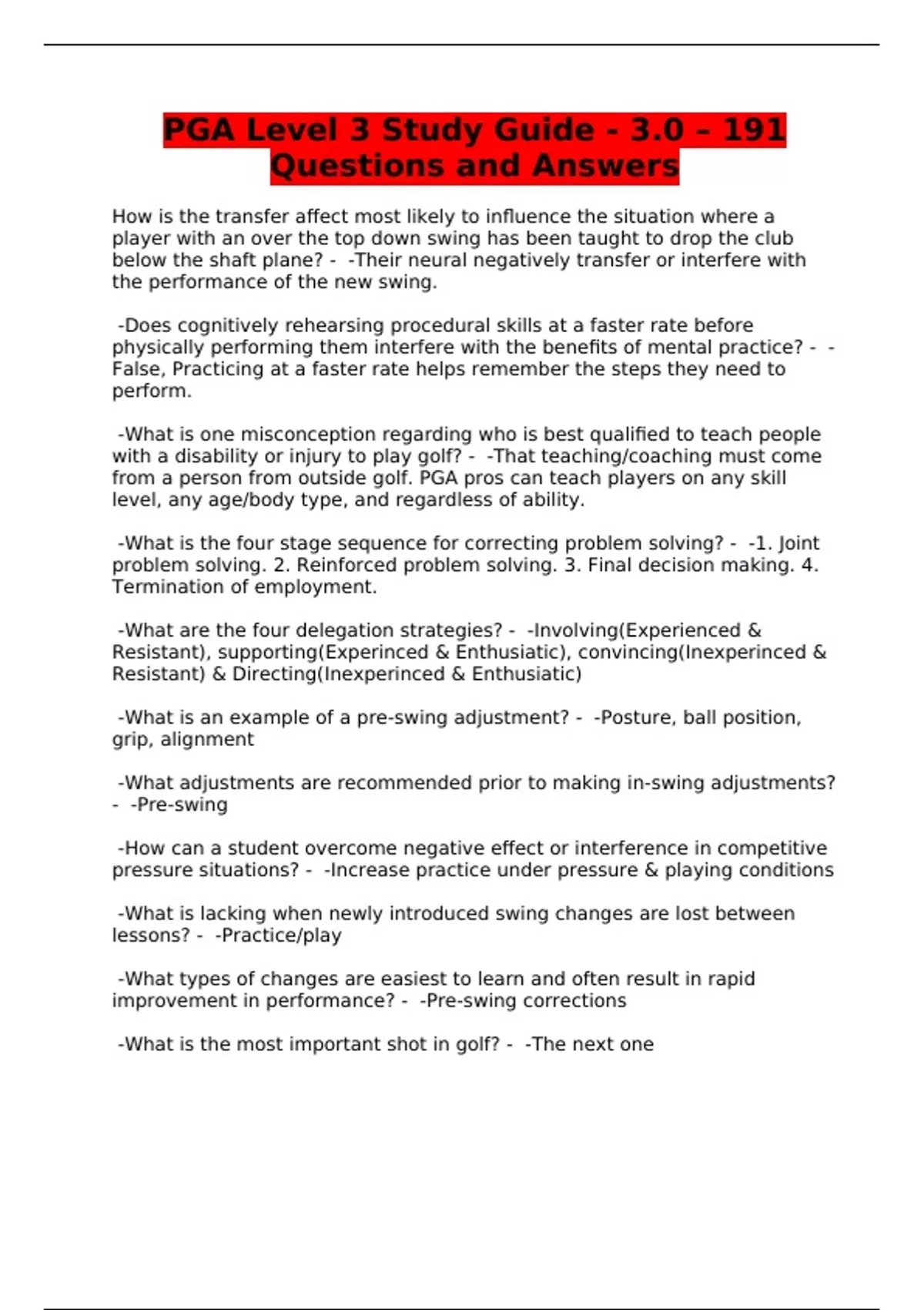 PGA Level 3 Study Guide - 3.0 – 191 Questions and Answers