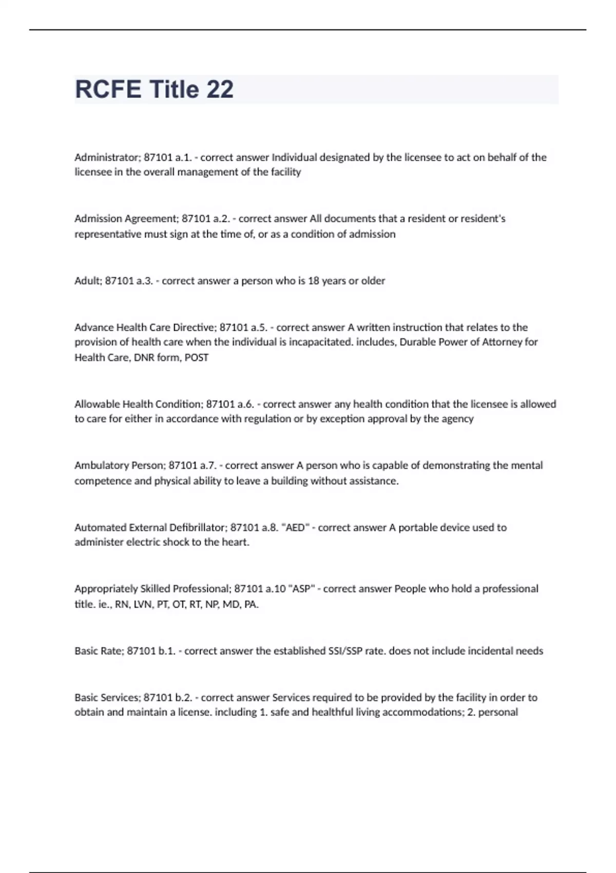 Exam of 14 pages for the course rcfe at rcfe (RCFE Title 22.)