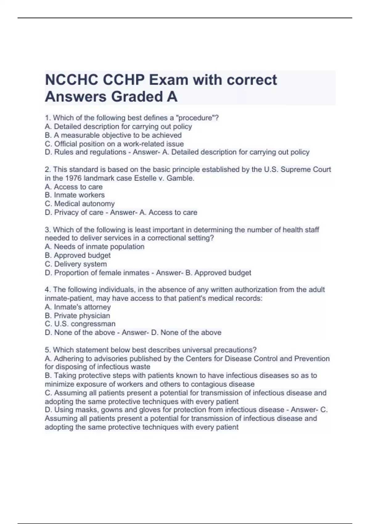 NCCHC CCHP Exam with correct Answers Graded A