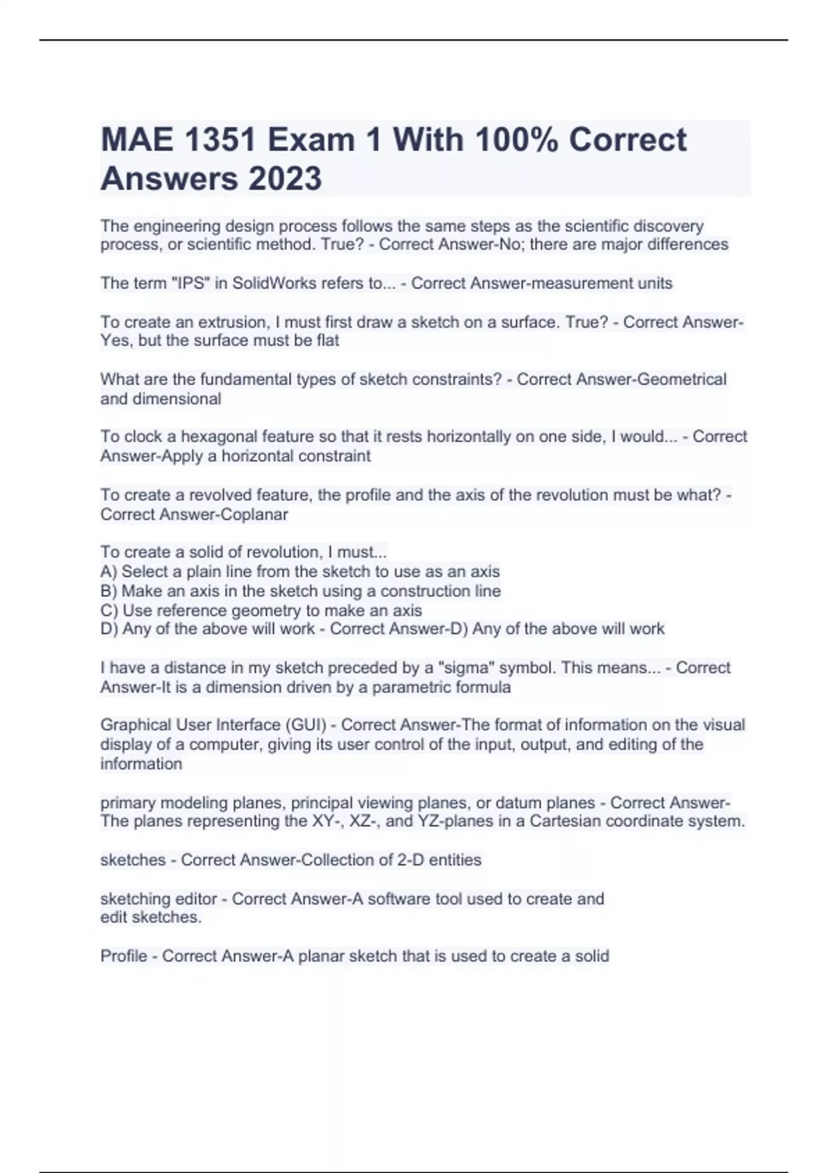 MAE 1351 Exam 1 With 100% Correct Answers 2023