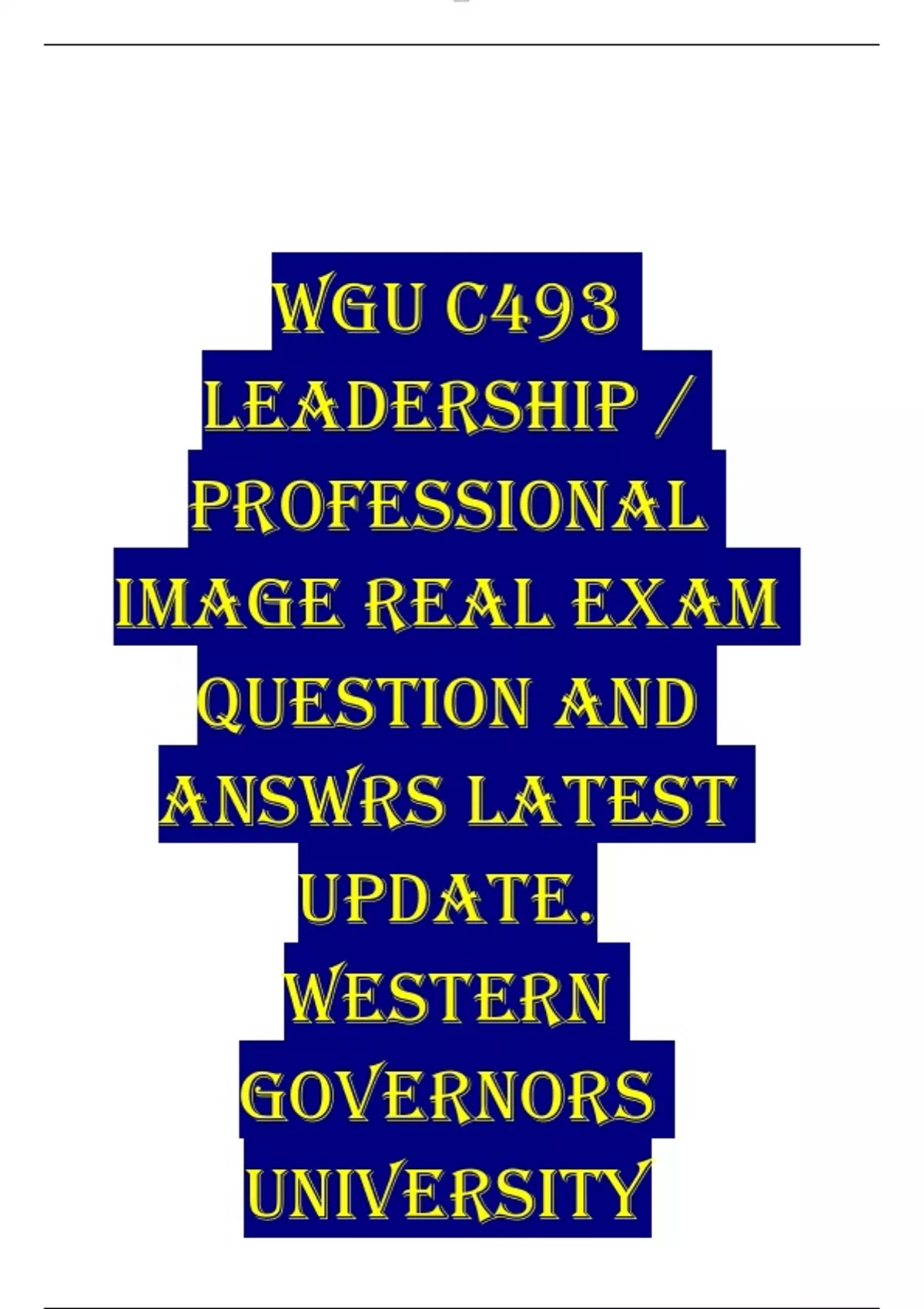 WGU C493 LEADERSHIP / PROFESSIONAL IMAGE REAL EXAM QUESTION AND ANSWRS LATEST UPDATE. WESTERN GOVERNORS UNIVERSITY