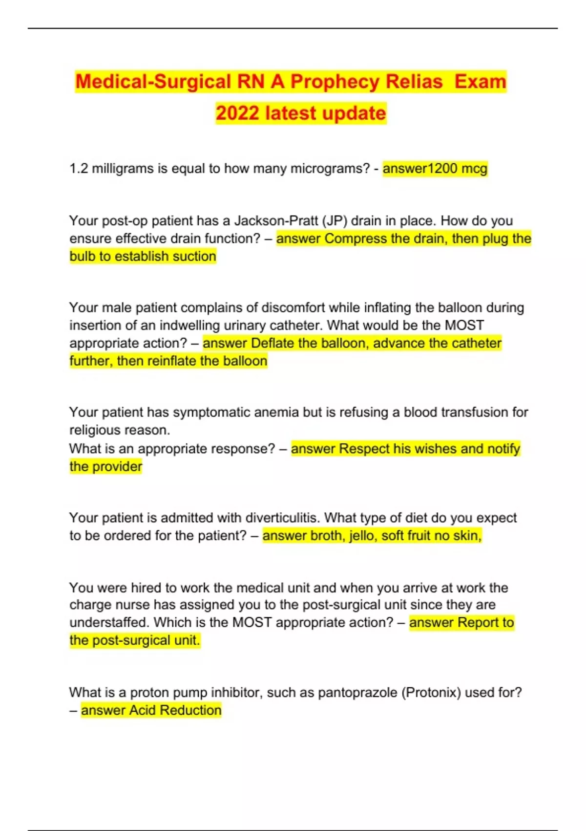Medical-Surgical RN A Prophecy Relias Exam 2023 latest update.