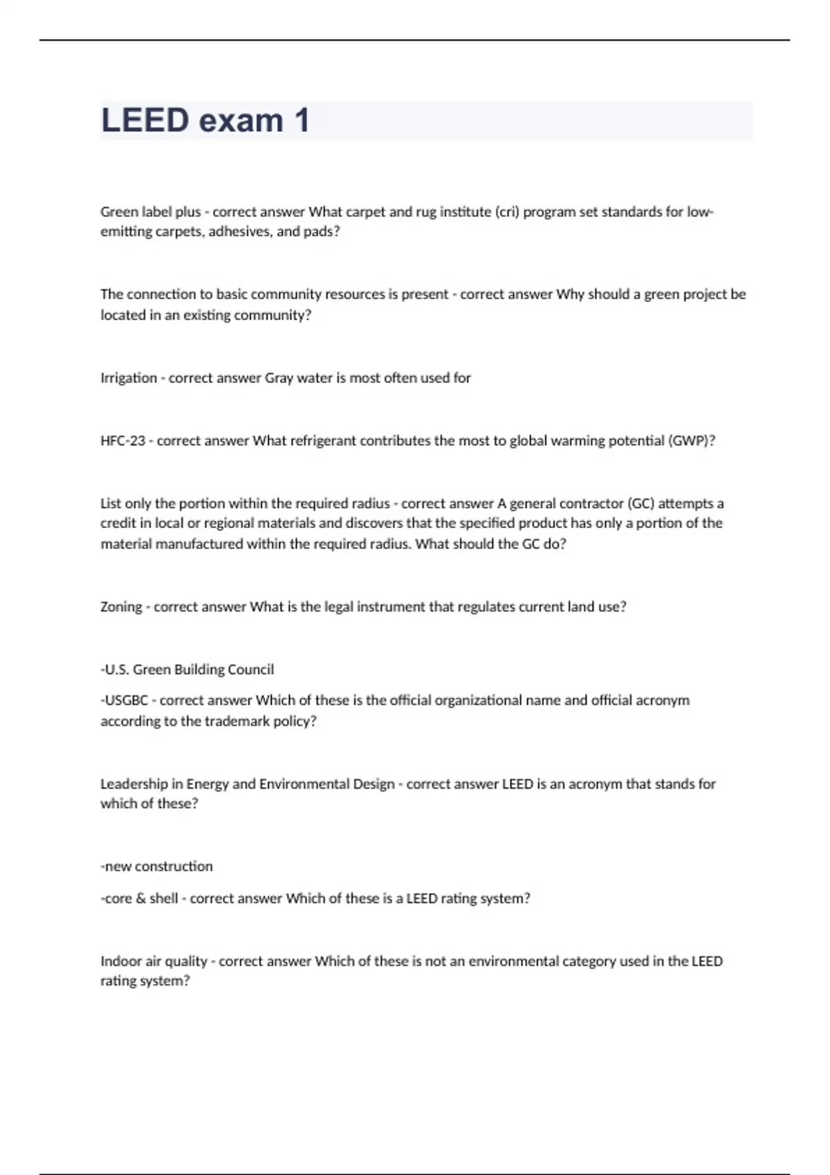 LEED exam 1 questions and 100% correct answers