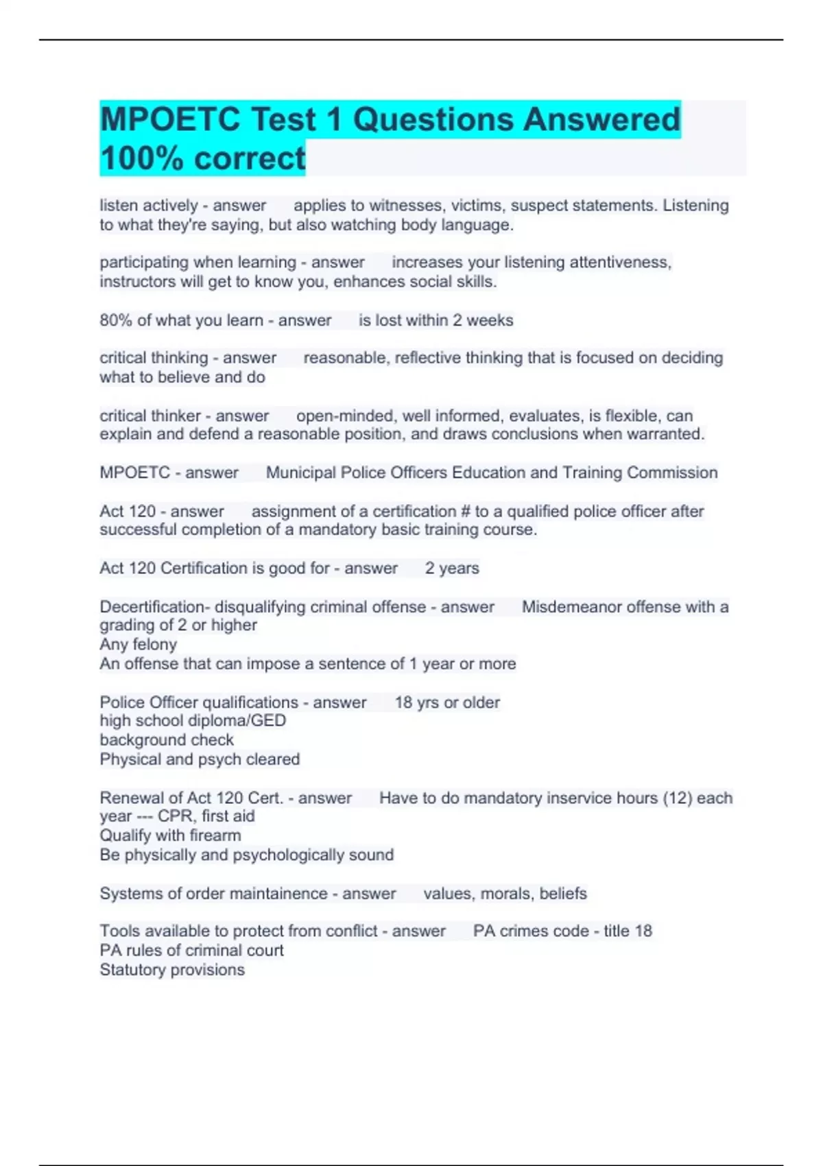mpoetc test 1 questions answered 100 correct