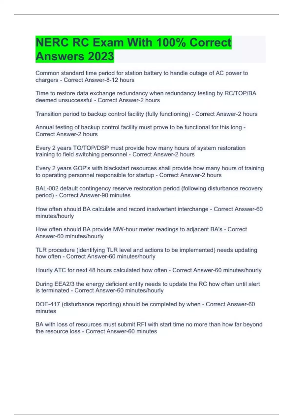 nerc rc exam with 100 correct answers 2023