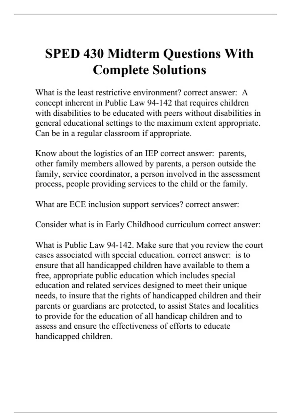 SPED 430 Midterm Questions With Complete Solutions