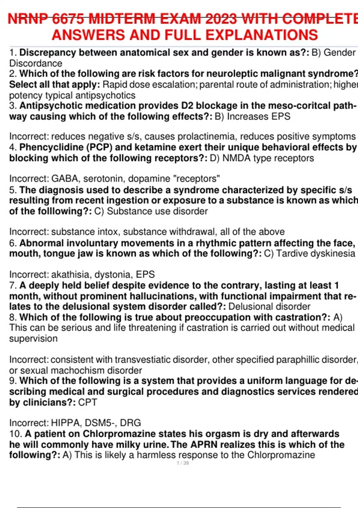 NRNP 6675 MIDTERM EXAM 2023 WITH COMPLETE ANSWERS AND FULL EXPLANATIONS
