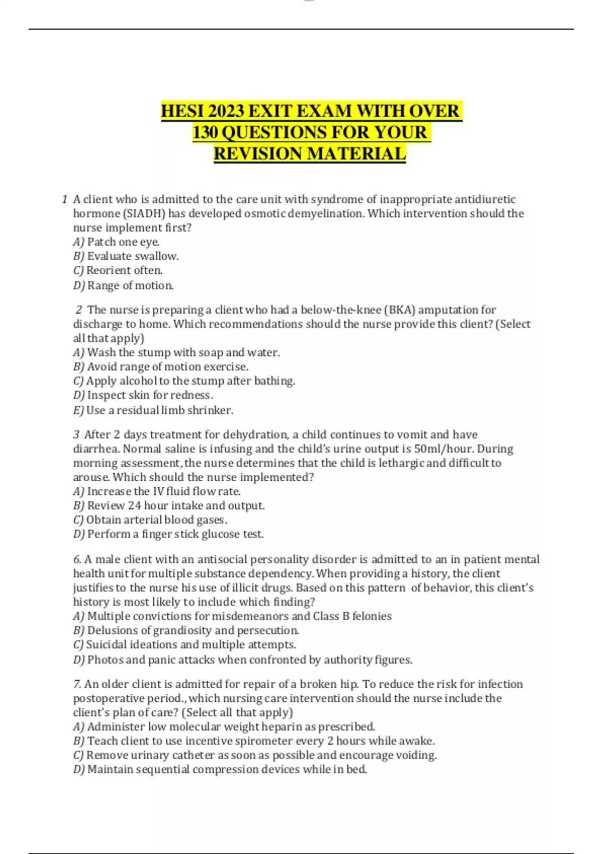 HESI 2023 EXIT EXAM WITH OVER 130 QUESTIONS FOR YOUR REVISION MATERIAL