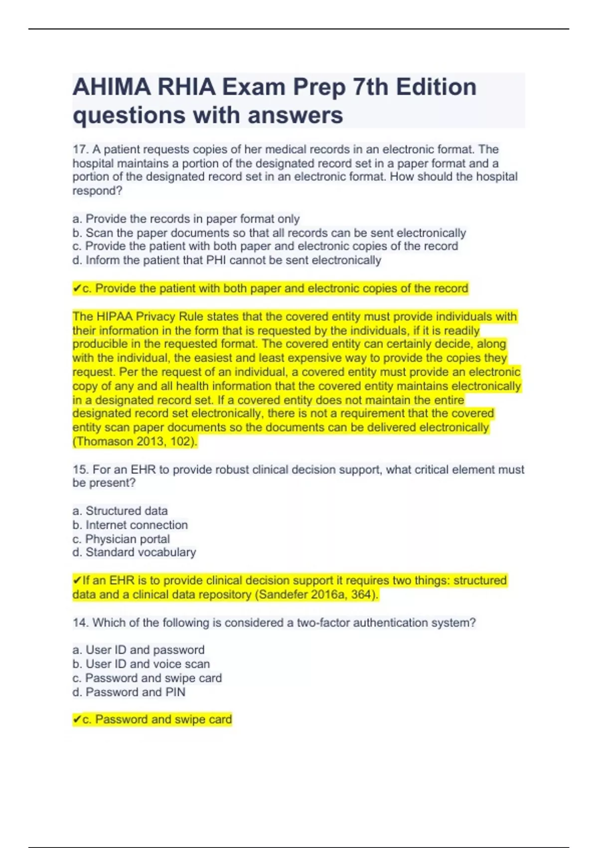 AHIMA RHIA Exam Prep 7th Edition questions with answers