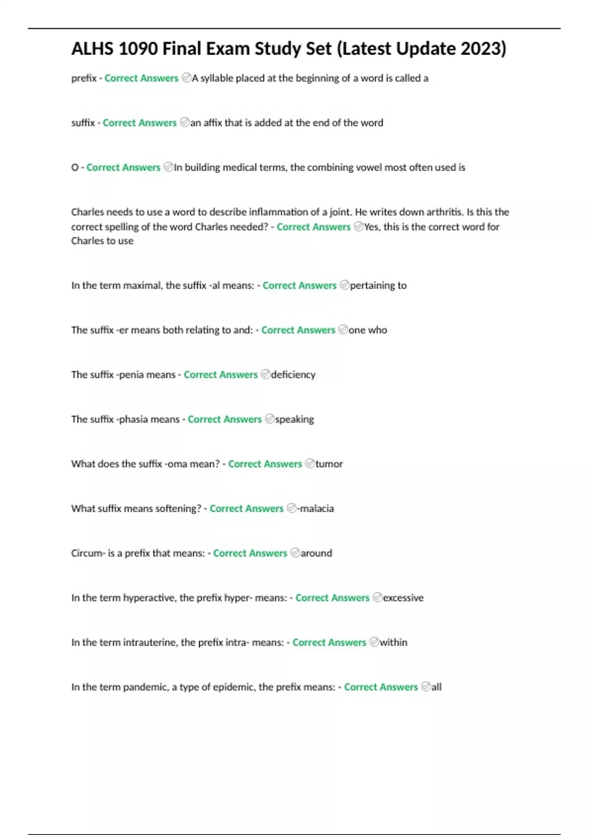 ALHS 1090 Final Exam Study Set (Latest Update 2023)