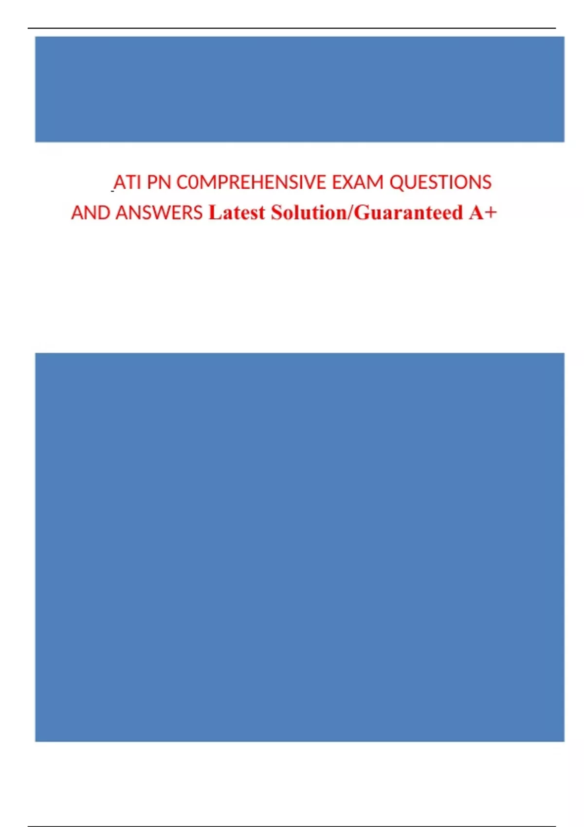 ATI PN C0MPREHENSIVE EXAM QUESTIONS AND ANSWERS Latest Solution/Guaranteed A+