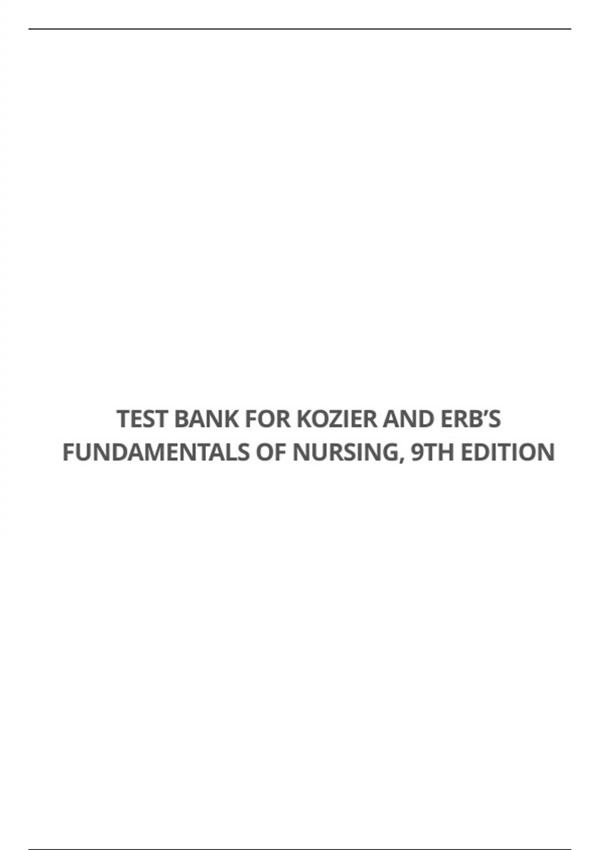 TEST BANK FOR KOZIER AND ERB’S FUNDAMENTALS OF NURSING, 9TH EDITION