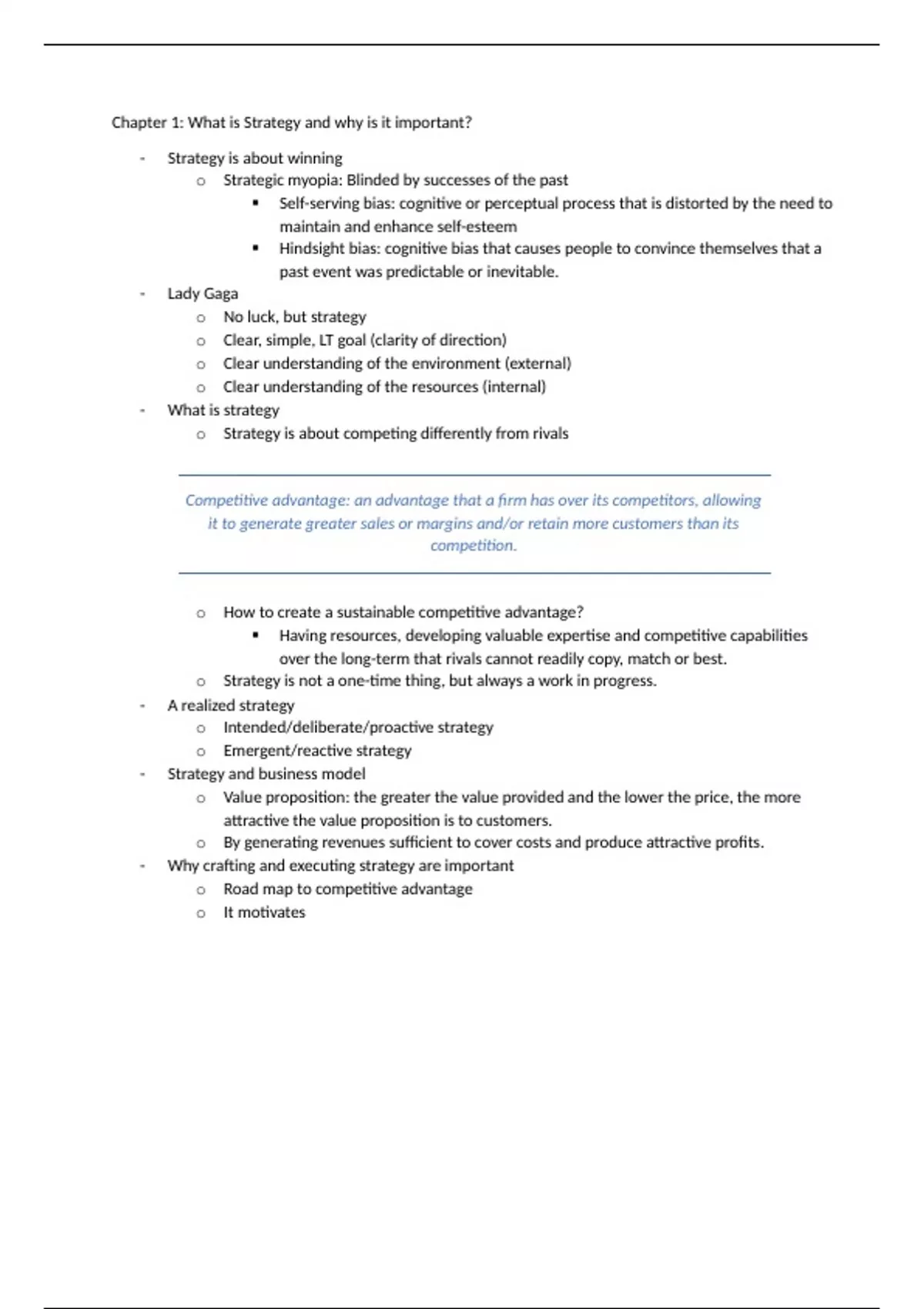 Class notes Strategic Management (HBA10c). Includes the summary of all slides.