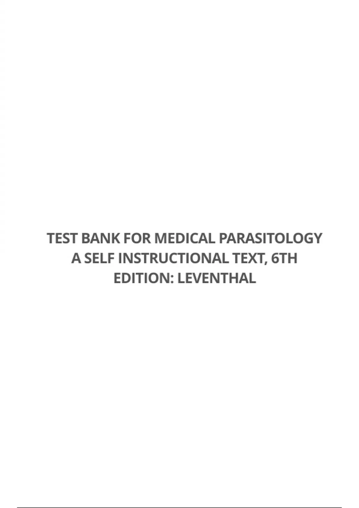 TEST BANK FOR MEDICAL PARASITOLOGY A SELF INSTRUCTIONAL TEXT, 6TH EDITION: LEVENTHAL