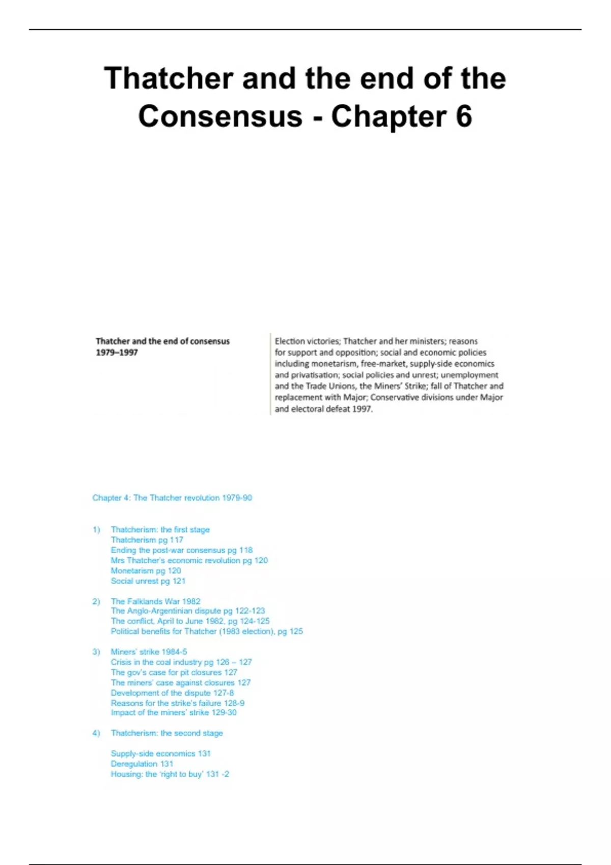 Chapter 4: The Thatcher revolution 1979-90