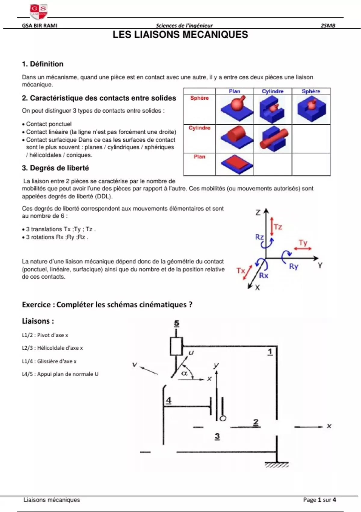 Liaisons mécaniques Page 1 sur 4