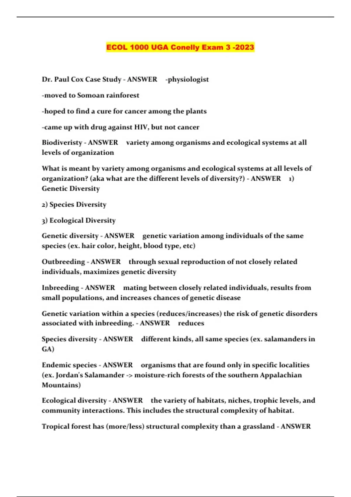ECOL 1000 UGA Conelly Exam 3 -2023...