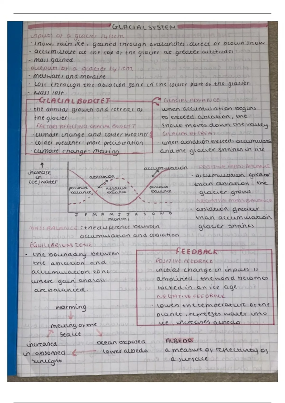 Summary WJEC A-Level Geography 1.2 Glaciation