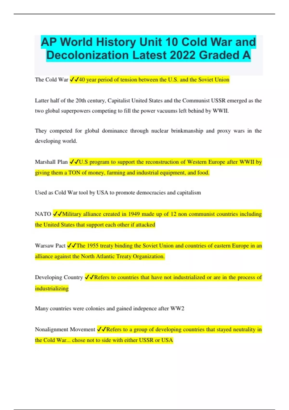 AP World History Unit 10 Cold War and Decolonization Latest 2022 Graded A