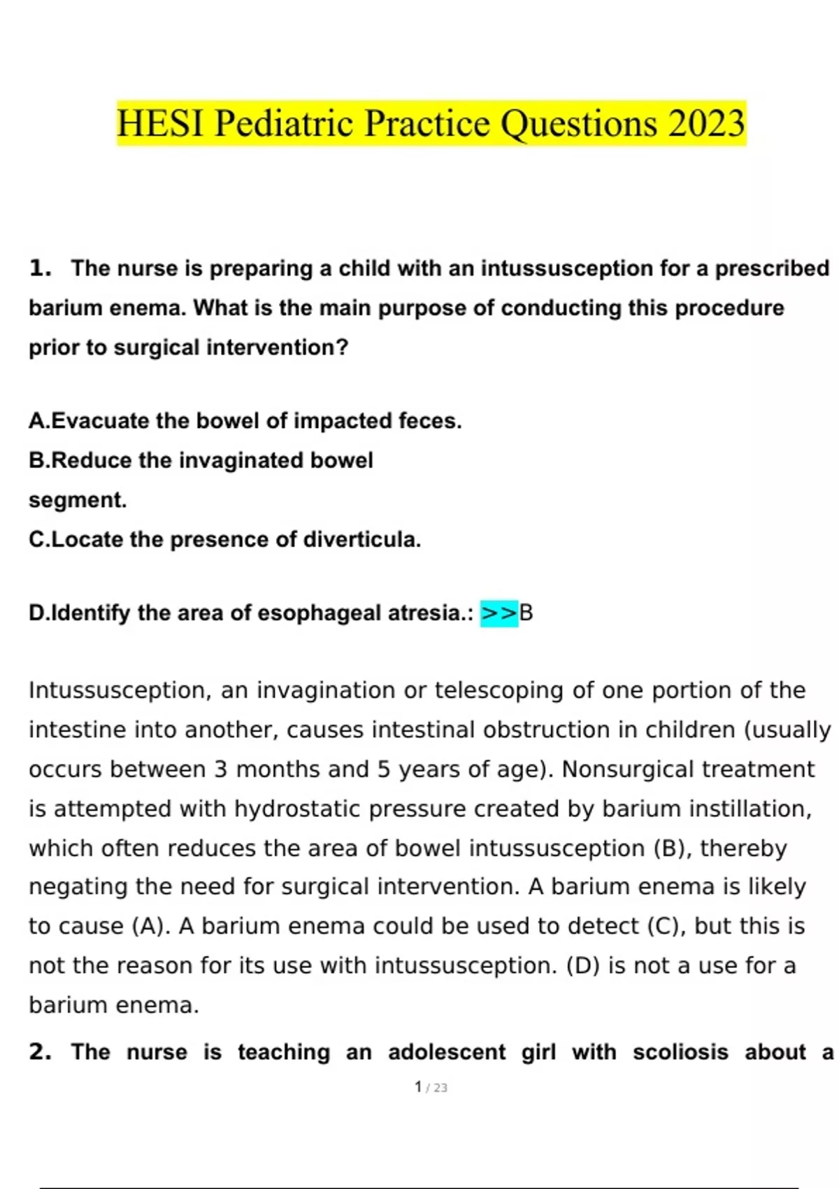 HESI Pediatric Practice questions and answers latest [100% correct answers]
