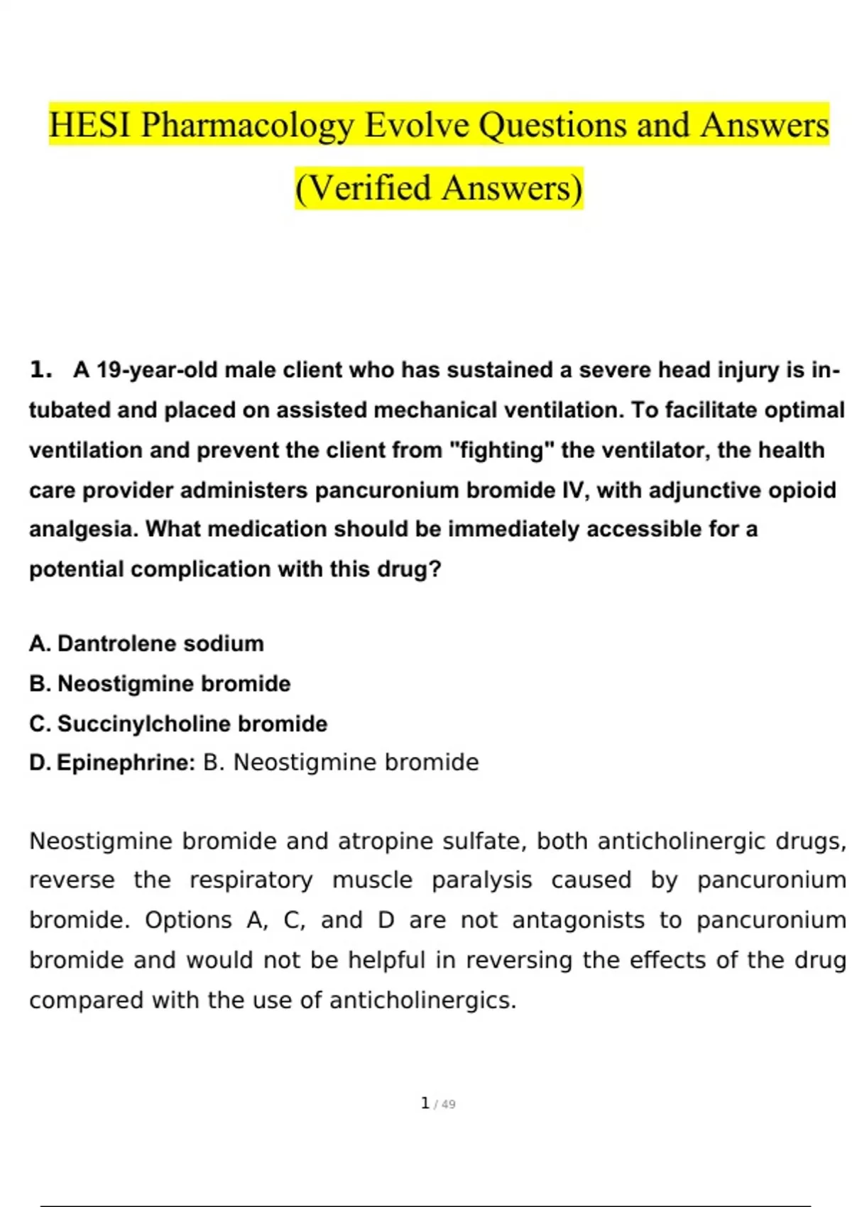 HESI Pharmacology Evolve Questions and Answers