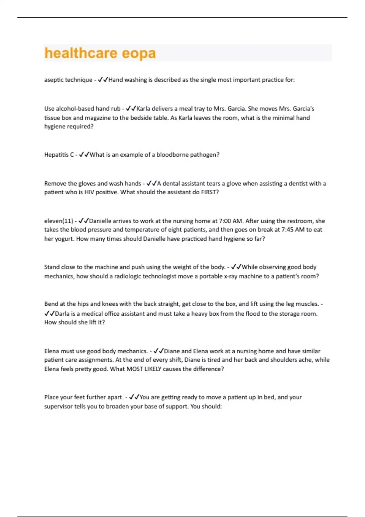 healthcare eopa | 219 Questions and Answers(A+ Solution guide)