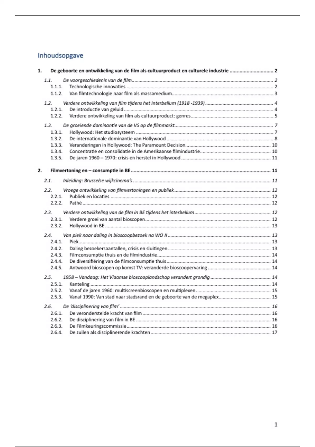 2.6.2. De disciplinering van film in BE ..................................................................................................... 16